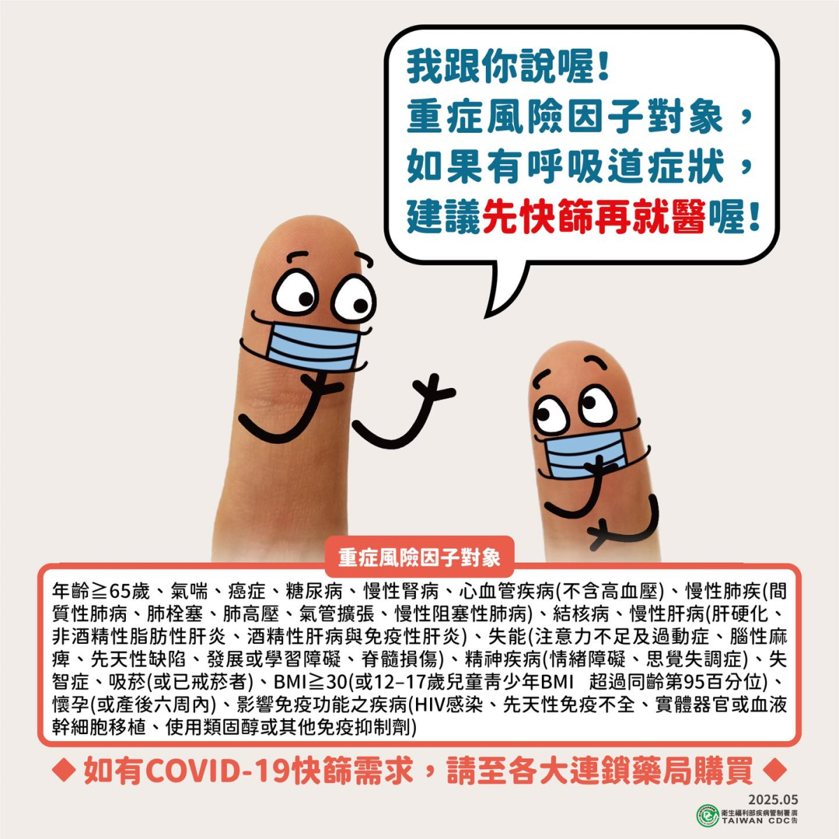 重症風險因子對象,如果有呼吸道症狀,